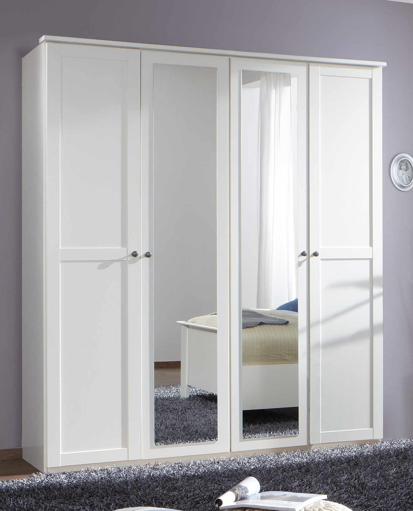 Chalet 6 door 4 mirror white wardrobe