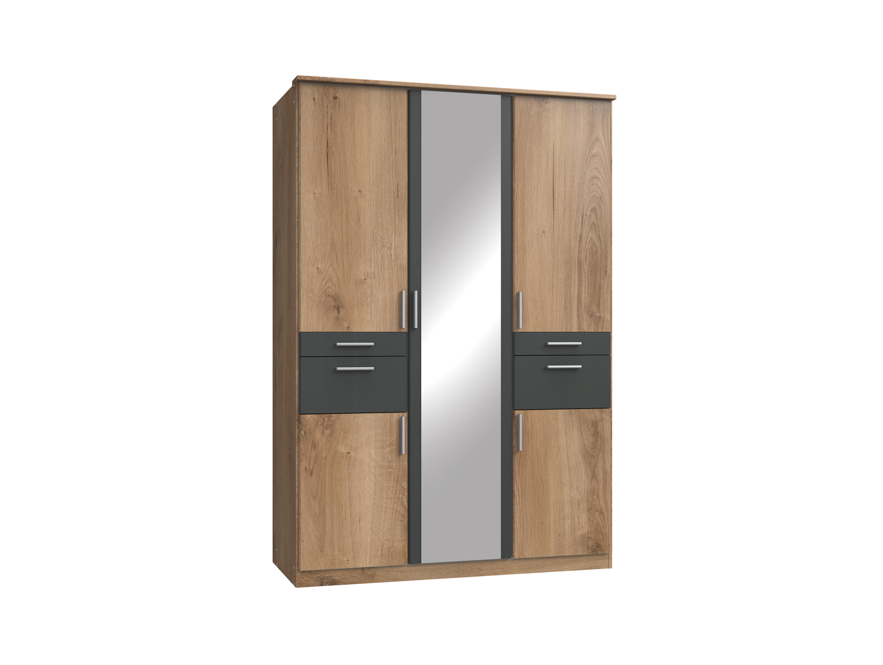 The Koblenz 2 Door 2 Drawer Wardrobe offers a combination of hanging, shelving and drawer space. The wardrobe has trendy handles along with the 1 Door being mirrored which give the wardrobe a modern look.This robe gives you 3 different areas of storage. Right side section is divided with 2 drawers at the centre. This Wardrobe Has 3 Small Shelves And 2 small Hanging Rails.All Tj`s products are designed and built in Germany and constructed to a high standard. All Tj`s ranges are subject to full quality checks before leaving the factory to ensure a consistent standard of product.