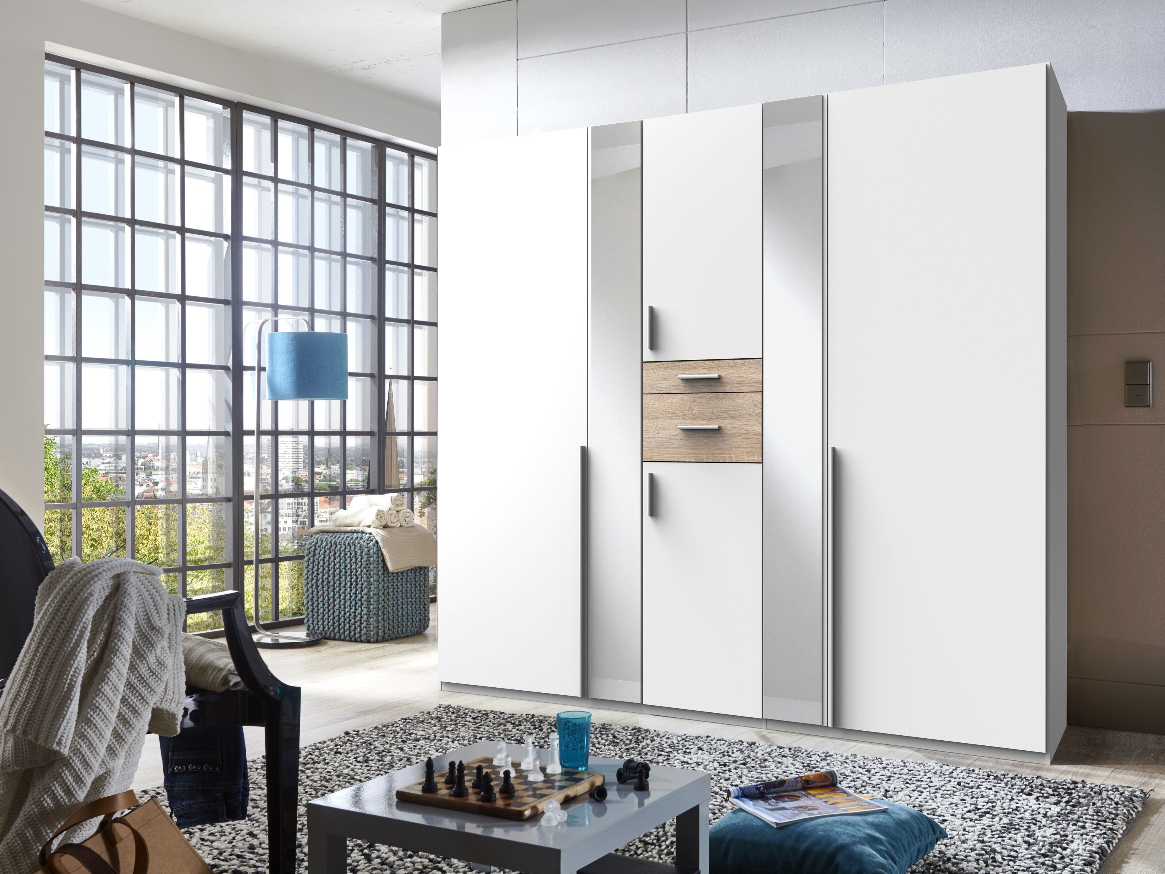 Odessa White And Oak 6 Door wardrobe