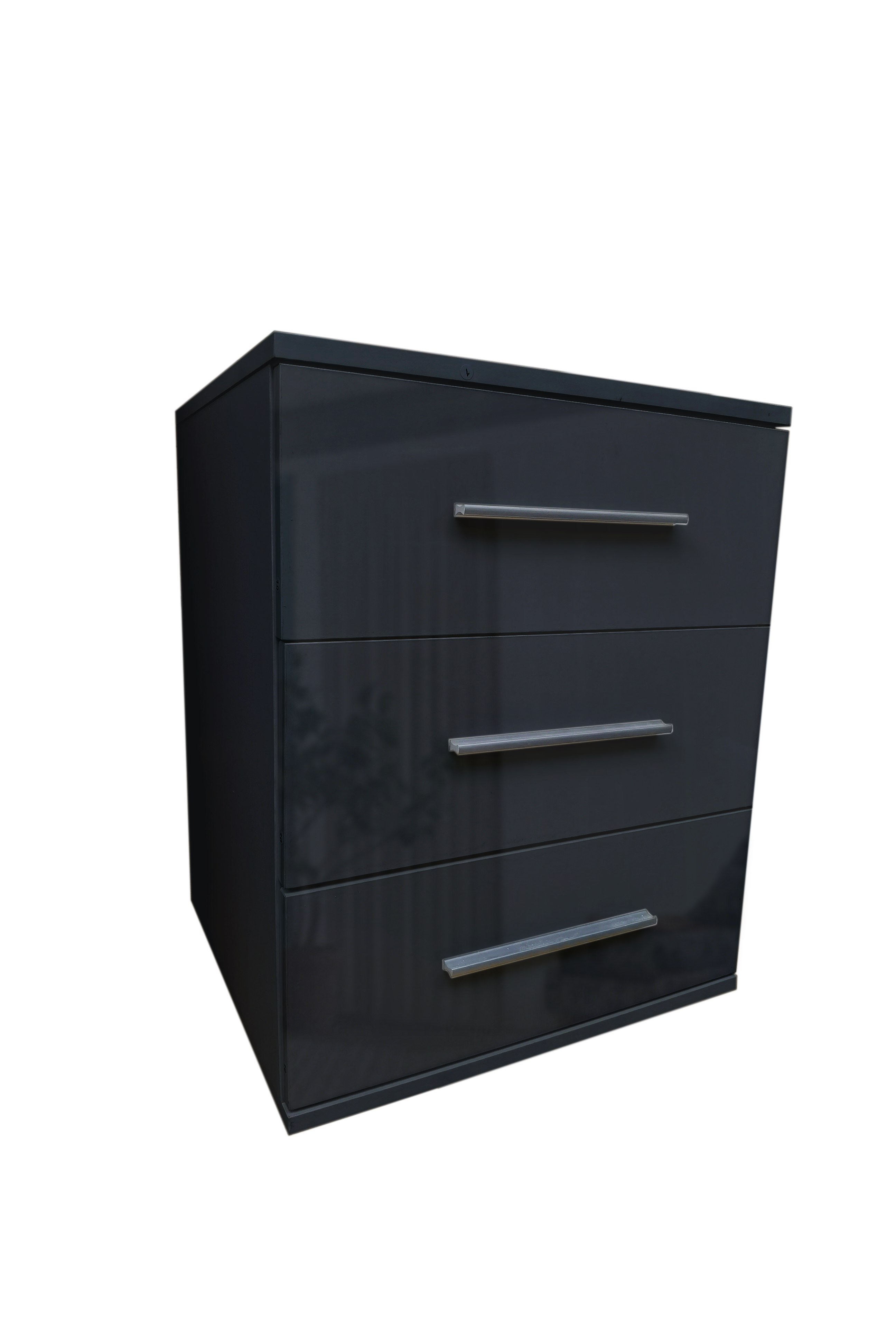 swindon 3 Drawer bedside finished in High Gloss Black for a great look, Trendy metal handles for a pleasant and modern look.All Tj`s products are designed and built to a high standard. All Tj`s ranges are subject to full quality checks before leaving the factory to ensure a consistent standard of product.