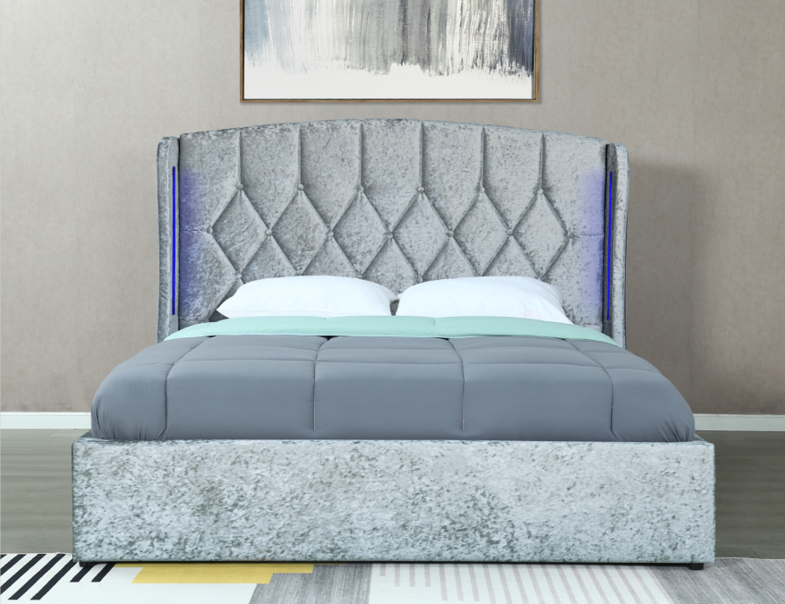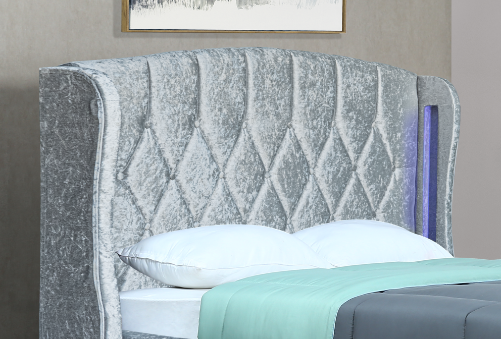 Mayfair Double size Crush Silver Bed Frame with led lights
