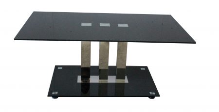 A sophisticated cross coffee table, this coffee table is perfect for making a focal point in your living room or study glass topped with one shelve and solid mdf base.