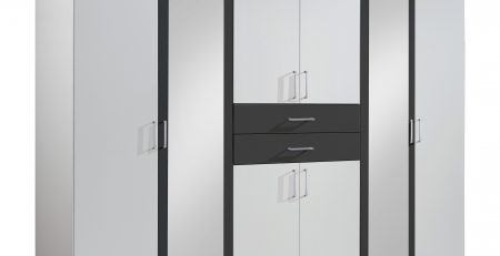 The Diver 5 Door wardrobe has a sleek and contemporary look,finished with Mirrored door.The wardrobe has trendy handles which gives the wardrobe a modern look .The wardrobe has two hanging rail and a top storage shelf and it has total 5 shelves divide in three section.