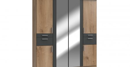 The Koblenz 3 Door 4 Drawer Wardrobe offers a combination of hanging, shelving and drawer space. The  wardrobe has trendy handles  along with the centre door being mirrored which give the wardrobe a modern look.This robe gives you 3 different areas of storage. Both side sections are divided with 2 drawers at the centre. This Wardrobe Has 5 Small Shelves  And 3 small Hanging Rails.All Tj`s products are designed and built in Germany and constructed to a high standard. All Tj`s ranges are subject to full quality checks before leaving the factory to ensure a consistent standard of product.