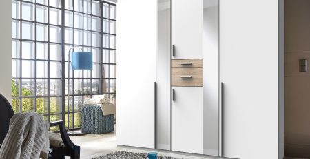 The Odessa 6 Door wardrobe has a sleek and contemporary look,finished with Mirrored door.The wardrobe has trendy handles which gives the wardrobe a modern look .The wardrobe has two hanging rail and a top storage shelf and it has total 5 shelves divide in three section.