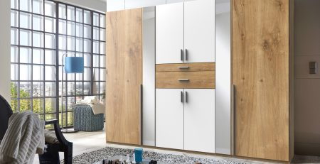 Odessa White And Planked Oak 5 Door wardrobe