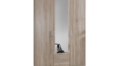 The Osaka 2 Door 2 Drawer Wardrobe offers a combination of hanging, shelving and drawer space. The  wardrobe has trendy long handles  along with the right side door being mirrored which give the wardrobe a modern look. The wardrobe has one hanging rail, four storage shelves divide in two section and 2 drawers.All TJ`S products are designed and built in Germany and constructed to a high standard. All TJ`S ranges are subject to full quality checks before leaving the factory to ensure a consistent standard of product.