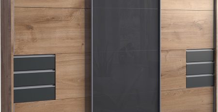 This saigon 225cm Sliding Wardrobe is Elegant And Will Give A Contemporary Look To Your Bedroom.This wardrobe has three sections, 1 hanging rail,3 large shelves,2 small shelves and 3 drawers which is perfect for additional storage space. The Wardrobe is supported by a strong and durable carcase that will complete the look of your bedrooms.All TJ`S products are designed and built in Germany and constructed to a high standard. All TJ`S ranges are subject to full quality checks before leaving the factory to ensure a consistent standard of product.