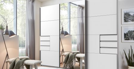 This saigon 225cm Sliding Wardrobe is Elegant And Will Give A Contemporary Look To Your Bedroom.This wardrobe has three sections, 1  hanging rail,3 large shelves,2 small shelves and 3 drawers which is perfect for additional storage space. The Wardrobe is supported by a strong and durable carcase that will complete the look of your bedrooms.All TJ`S products are designed and built in Germany and constructed to a high standard. All TJ`S ranges are subject to full quality checks before leaving the factory to ensure a consistent standard of product.