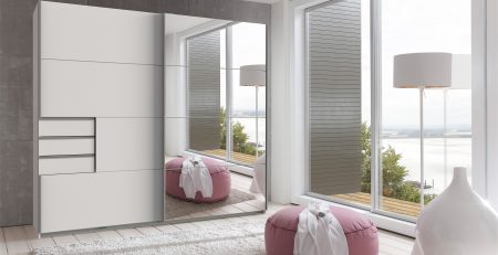 This saigon 270cm Sliding Wardrobe is Elegant And Will Give A Contemporary Look To Your Bedroom.This wardrobe has three sections, 2 hanging rail,4 large shelves,4 small shelves and 6 drawers which is perfect for additional storage space. The Wardrobe is supported by a strong and durable carcase that will complete the look of your bedrooms.The large mirror on the front is perfect for dressing in the morning.All TJ`S products are designed and built in Germany and constructed to a high standard. All TJ`S ranges are subject to full quality checks before leaving the factory to ensure a consistent standard of product.