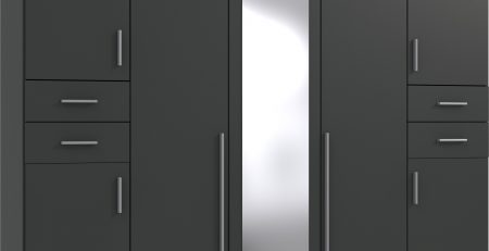 The vegas Graphite 4 Door wardrobe has a sleek and contemporary look,finished with Mirrored door.The wardrobe has trendy handles which gives the wardrobe a modern look .The wardrobe has 1 hanging rail and total 7 shelves divide in three section.